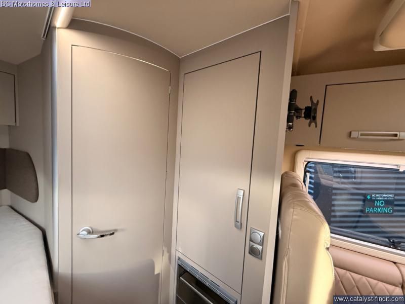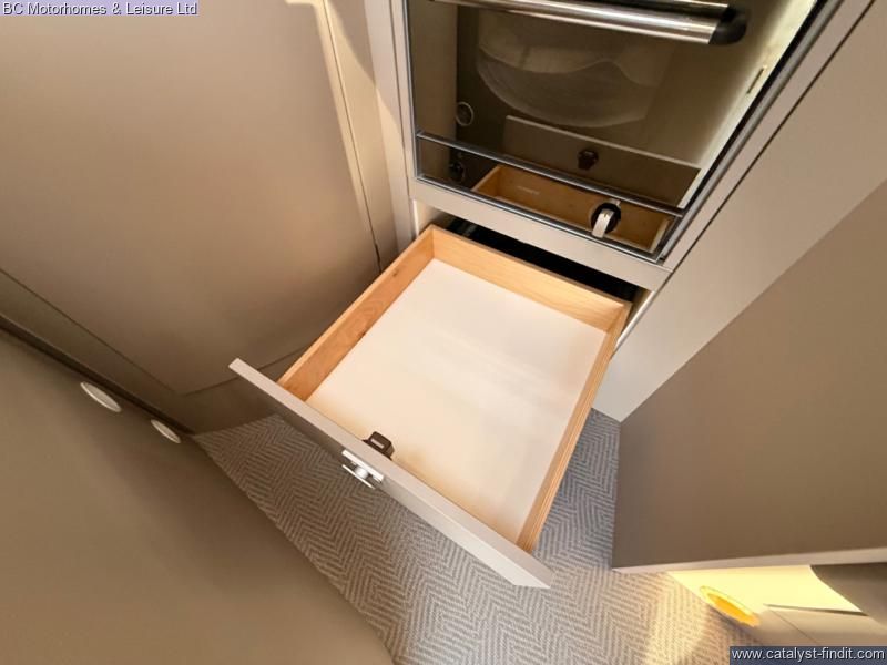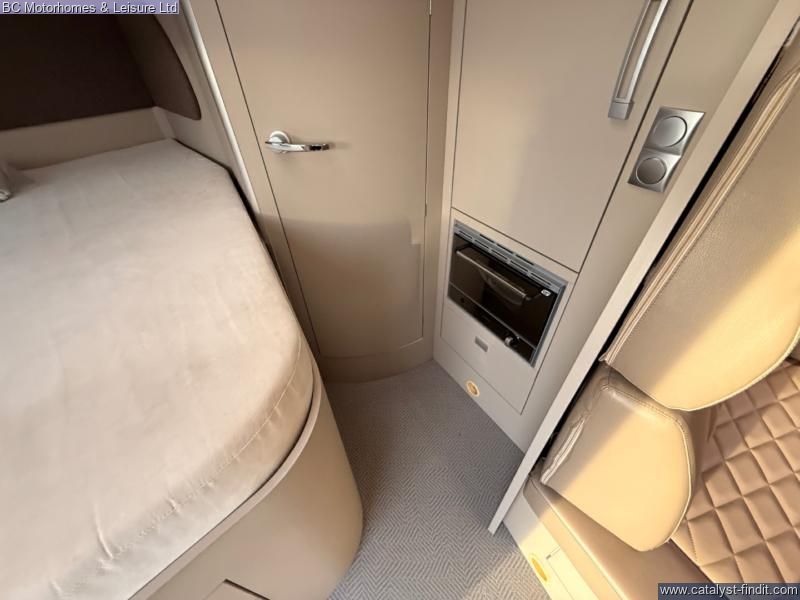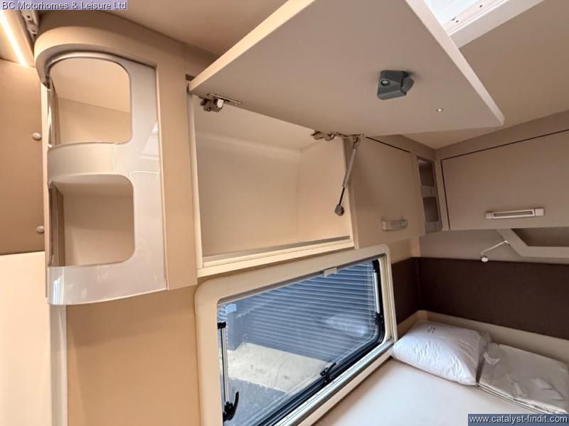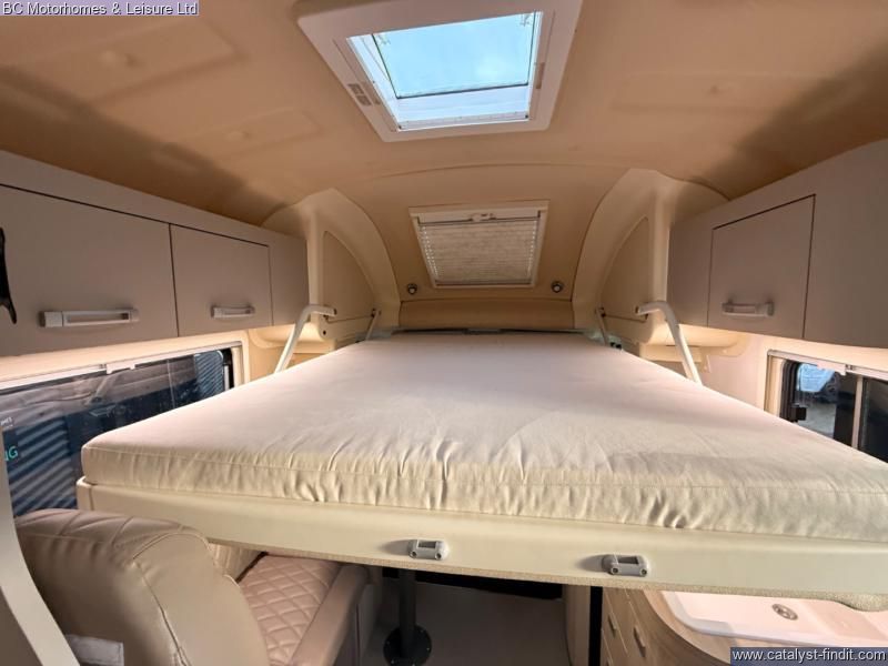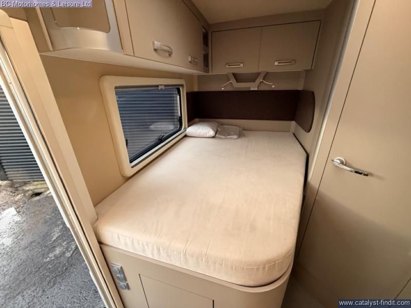 - Fixed French Double bed with ample storage underneath accessible internally and through the external locker door. Drop down double bed with memory foam mattress.