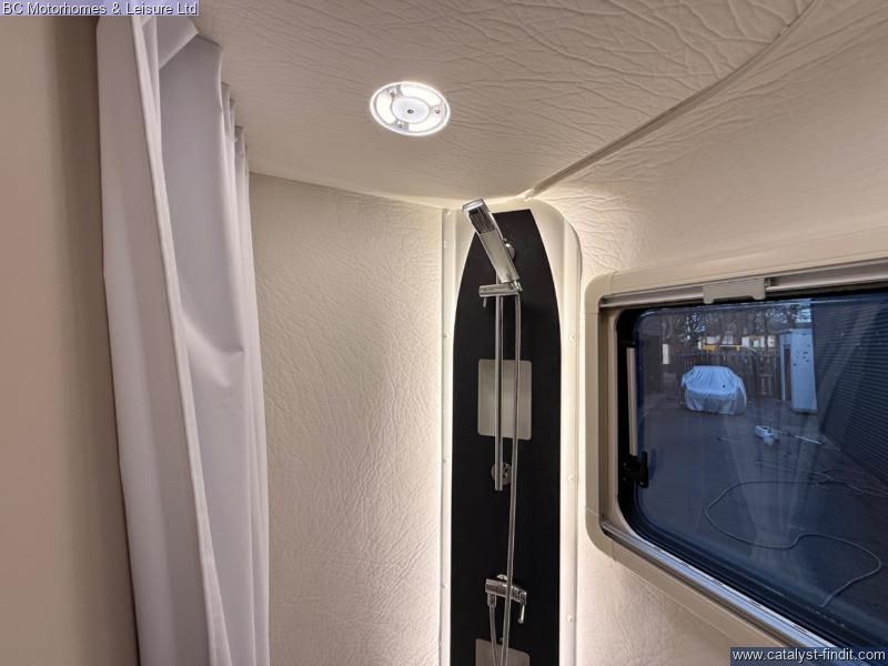 - Moving to the spacious wash room, options have been selected with the mains socket point and new roof interior lighting.