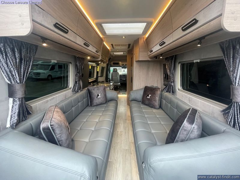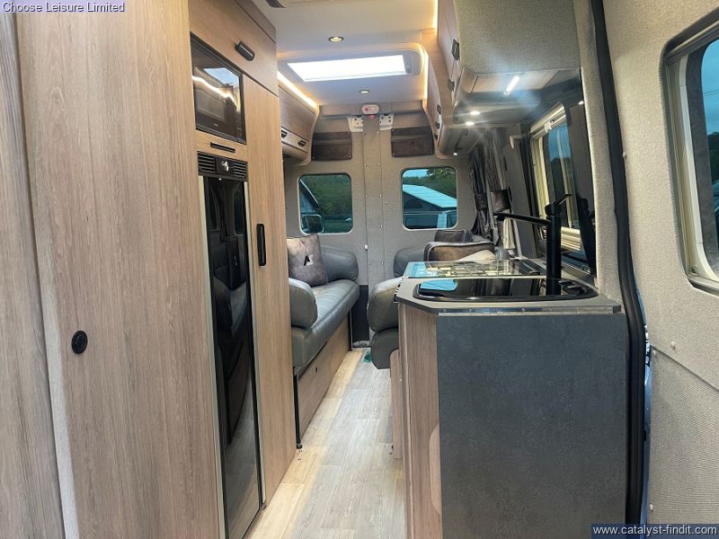 - A Whale gas barbecue point is located on the nearside, towards the back. Also on the nearside is the roll-out Thule Omnistor awning. Heated swivelling seats in the can with a large touchscreen to control the audio systems. Rear lounge with two sofas in a smart buttoned leather finish. Mood lighting throughout and moveable LED lights on runners. Rear barn doors -Great for throwing open and enjoying the great outdoors! Extendable worktop in kitchen plus a full oven and a seperate grill. Sleeping options include two single beds or you can make the sofas up into a large double, depending on your preference. Washroom with toilet, shower, sink plus storage cupboard. Plenty of storage throughout. Technical: