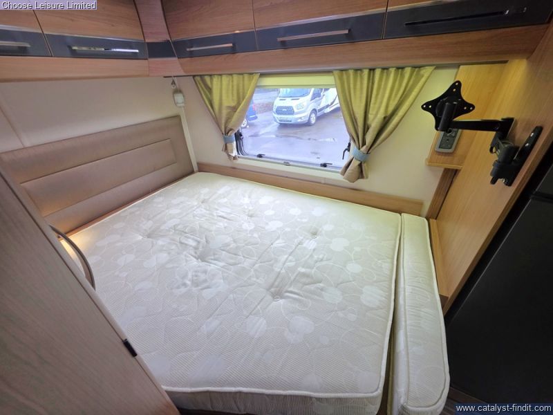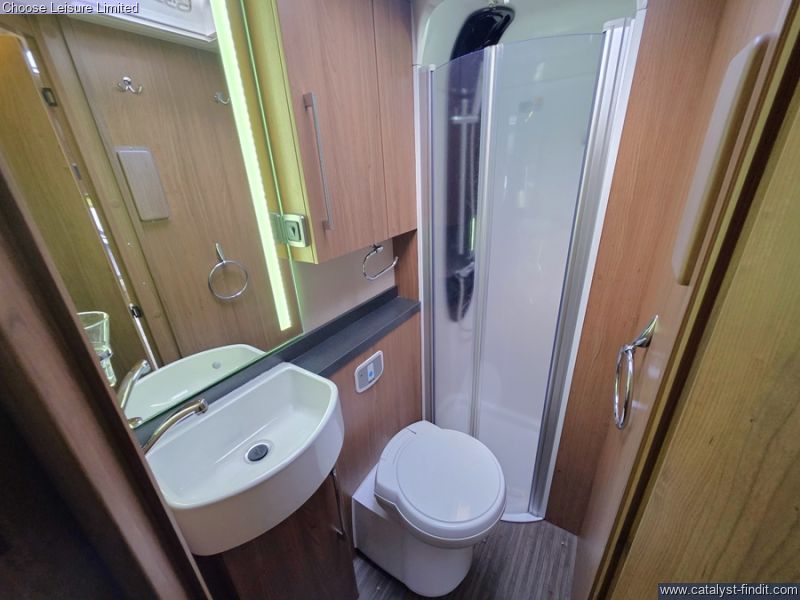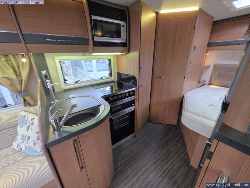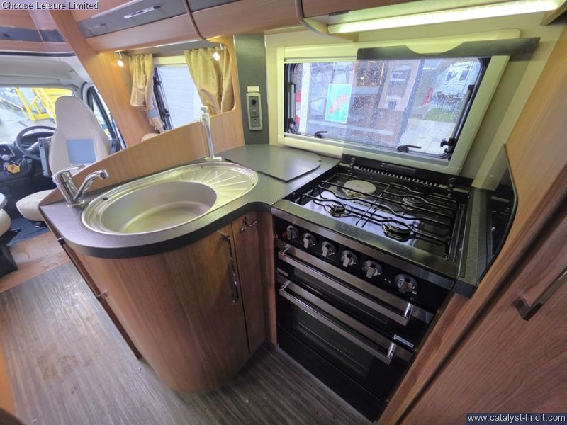 - Featuring a light and airy forward lounge area, enhanced by swivelling front seats and easily converting into a double bed. The central kitchen includes full size oven, hob and fridge plus plenty of storage for all of the essentials. The generous washroom area has a separate shower cubicle to prepare yourself for the day ahead. At the rear is the fixed double bed with storage underneath. Technical:
