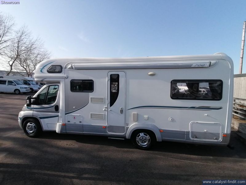 - The 2011 Auto-Trail Apache 700 is a 6-berth, 6-belt motorhome built on a Fiat Ducato chassis with a 3.0L 160bhp engine, featuring an end U-shaped lounge, overcab bed, central washroom with separate shower, and a well-equipped kitchen, offering ample family space with specs like cab AC, cruise control, and an awning and solar panel. Key specs include length 7.5m, a 4250kg GVW (requiring a C1 license), and a good payload for longer trips, making it a popular family choice.