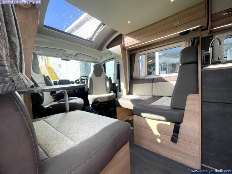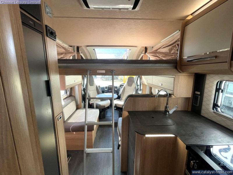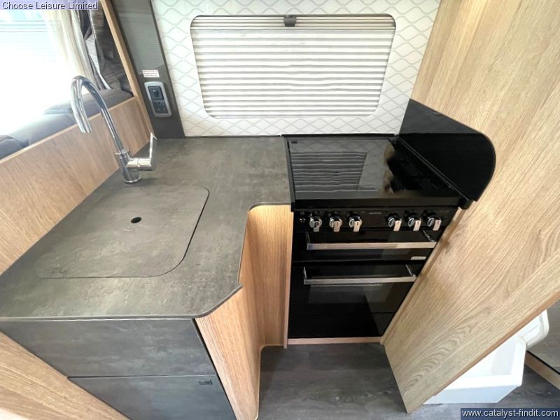 - Up front the lounge is made up of two opposing sofas - a great communal space which seats 6 once the cab seats are swiveled. The lounge space can be transformed into an extra long double bed at night-time: fantastic for taller guests. Storage can be found throughout the van in the form of overhead lockers, stowage under the sofa's and handy cupboards throughout. The star of the show, the rear island bed, also slides back so you can sit up and read or be served breakfast in bed! This also provides more room at the base during the day. The kitchen comes complete with full-sized cooker, hob and separate grill. A good galley kitchen that should provide everything you need. Opposite is the bathroom, consisting of a separate shower cubicle, toilet, basin, and cupboards. You can close off this space entirely to make the bedroom an en-suite. Technical: