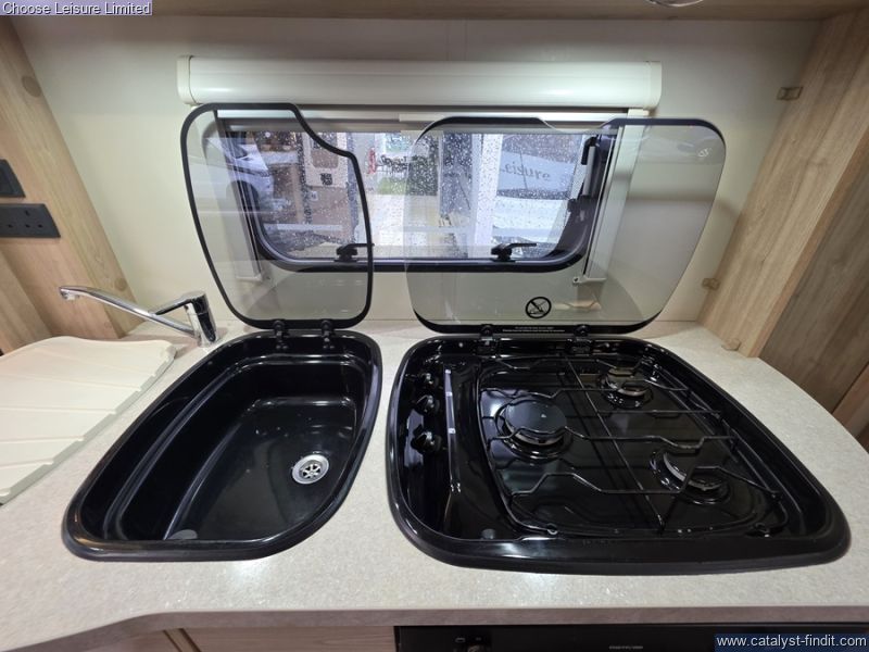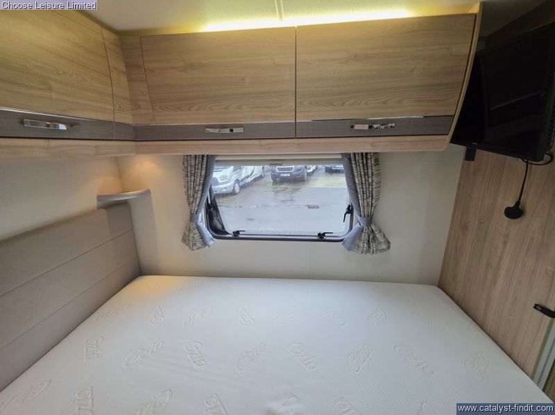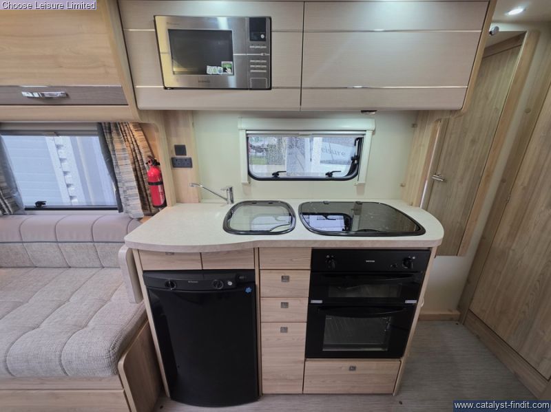 - With a multi-functional front lounge area that has opposing settee's that not only have hidden travel seats but also converts into a comfortable double bed. The central kitchen is housed all within one unit and includes an oven/grill, fridge/freezer, sink and hob; plus storage above for all of your necessary essentials. A fixed French bed can be found towards the back, again with storage above. To one side of your fixed bed is a neat bathroom space comprising of toilet, sink and shower. Everything has its space and feels organised like a home from home. Technical: