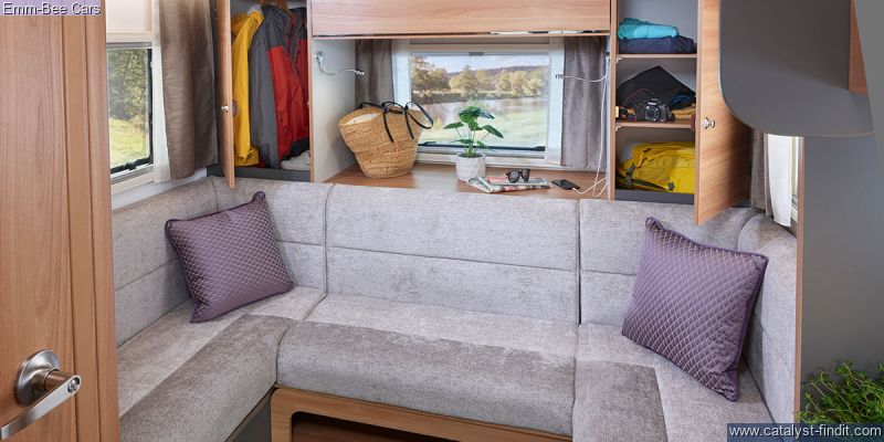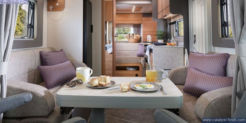 - Fully adjustable upholstered driver and passenger Captain’s seats with twin upholstered armrests and integrated headrests Flexi lounge featuring twin Aguti convertible travelling seats Standard ‘Odyssey’ soft furnishings supplied with four scatter cushions Thetford 142 litre combined tower refrigerator with freezer compartment Drop down kitchen worktop extension Thetford ‘K-Series’ combined oven, grill and hob with electronic ignition and flame failure device Sheer panel curtains in rear lounge Rear lounge featuring domestic style sofa seating featuring premium quality fabrics and high density foam filling Bespoke motorhome bedding set (cost option) Easy to operate electric-powered three position drop down beds Ford 2.0 litre 165bhp engine with automatic gearbox Vanity cupboard with mirrored door and toothbrush holder Countertop mounted washroom hand basin with swan neck ceramic ball mixer tap Electrical pedestal table with multidirectional swivel ‘Nebula Silver’ finish top and telescopic leg
