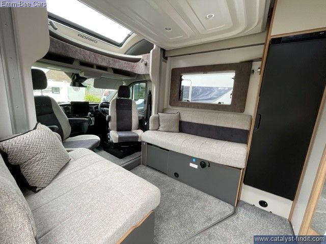 - Fully adjustable upholstered driver and passenger Captain’s seats with twin upholstered armrests and integrated headrests Flexi lounge featuring twin Aguti convertible travelling seats Standard ‘Odyssey’ soft furnishings supplied with four scatter cushions Thetford 142 litre combined tower refrigerator with freezer compartment Drop down kitchen worktop extension Thetford ‘K-Series’ combined oven, grill and hob with electronic ignition and flame failure device Sheer panel curtains in rear lounge Rear lounge featuring domestic style sofa seating featuring premium quality fabrics and high density foam filling Bespoke motorhome bedding set (cost option) Easy to operate electric-powered three position drop down beds Ford 2.0 litre 165bhp engine with automatic gearbox Vanity cupboard with mirrored door and toothbrush holder Countertop mounted washroom hand basin with swan neck ceramic ball mixer tap Electrical pedestal table with multidirectional swivel ‘Nebula Silver’ finish top and telescopic leg