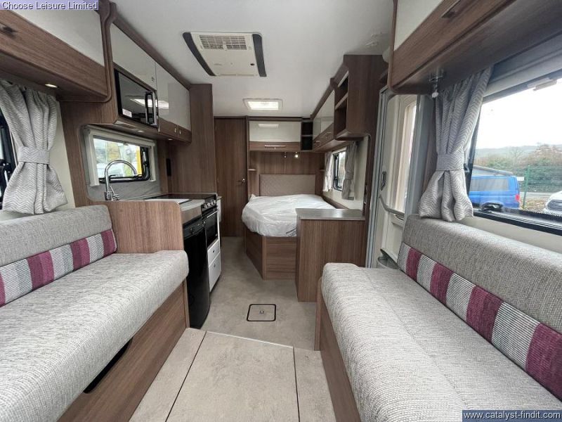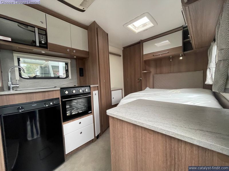 - Both front seats swivel to face the lounge area which has two opposing side settees that can convert into a double bed. There is another fixed French bed towards the rear. The central kitchen offers a fridge, microwave, oven and hob. The large rear washroom has a separate shower. The Perfect balance of comfort, style and practicality. Technical: