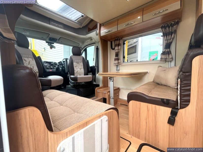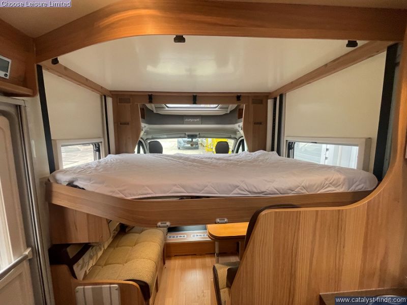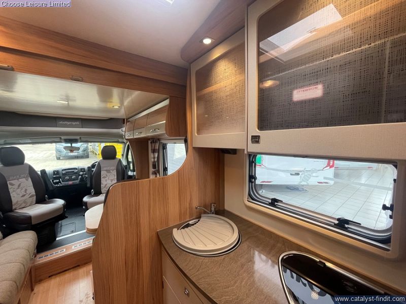 - Hosting a lounge with swivelling front seats and a side settee, it offers plenty of living space for ultimate comfort. Features a forward-facing two-seater with seatbelts, which can be used as a single bed and an electric transverse drop-down bed above. The kitchen is fully equipped with a sink, hob, oven, microwave and a full size fridge. The spacious washroom spans the rear of the motorhome and houses a separate shower cabin. Technical: