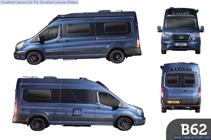 - This NEW, 2 berth, Bailey Endeavour B62 is based on the Ford Transit with a 165bhp/1995cc engine, and 8 speed automatic gearbox. Compact by design, immense in performance, and adventurous by nature, the first ever panel van conversion from Bailey is primed and ready. This 6-metre campervan has rear parallel seat lounge converts into twin singles or a double bed. Space-saving combination washroom with onboard shower and tambour partition door. there's a fully equipped kitchen with a Thetford 90L compressor fridge, 3-ring gas hob, combination oven and grill. Get ready for off-grid adventures with a 100-watt Truma solar panel and 105 Ah AGM leisure battery, insulation and Thule 3.5m wind-out awning, and Truma Diesel Combi D4E heating.