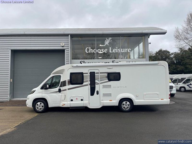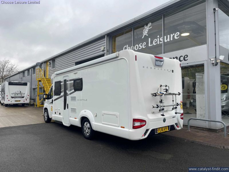 - The Bessacarr Hi-style 494 is a lovely luxury low profile coach-built motorhome. With 4 travelling seats and 4 berth is perfect for families touring in style. The front features a half dinette with front swivel seats ensuring everyone has a seat at the table, this can also be converted to a double bed. The central kitchen is well equipped with a 3 burner hob and electric hot plate, sink, microwave and a full size fridge opposing the washroom with a separate shower. The bedroom covers the rear of the motorhome featuring a double island bed. Technical:
