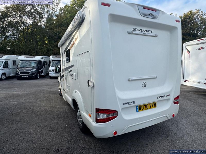 - The Swift C205 Is a lovely Compact 3 berth motorhome featuring 4 travelling seat belts with generous kitchen, Combined shower toilet cubicle and a good szied front dinette. Thus Swift also includes a whole host of special adition extras such as a TV Aerial, Door locks, Tracker, Reversing camera, Wind out canopy, Reversing sensors and much more. come and see this fantastic used Swift at Davan in Weston - Super - Mare or call our sales team on 01934 524 242.