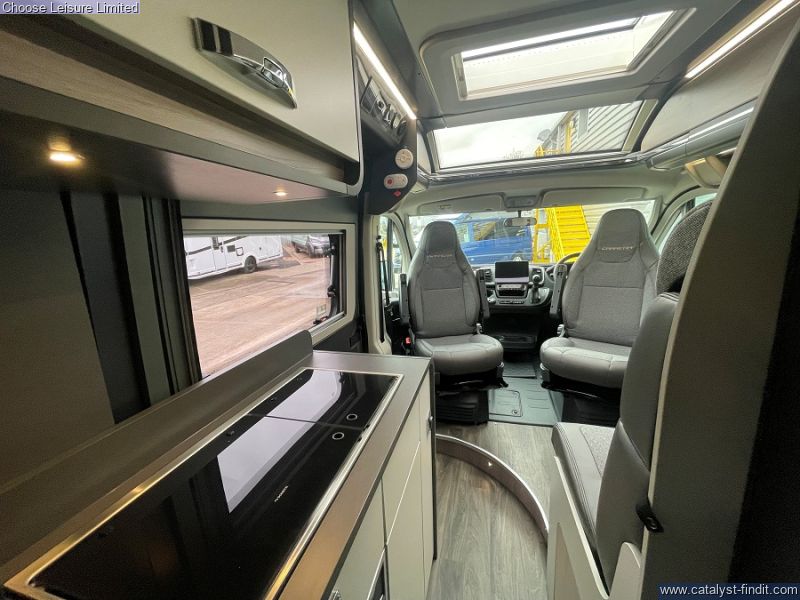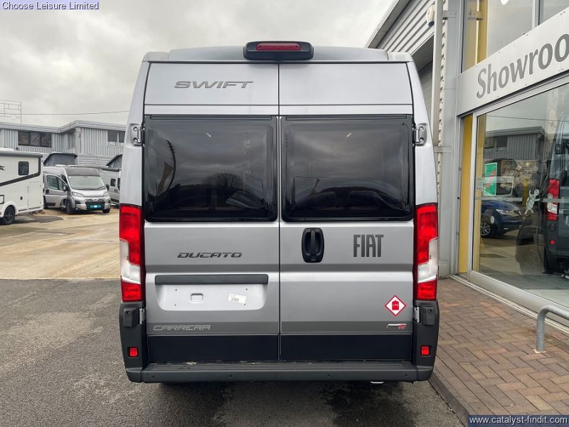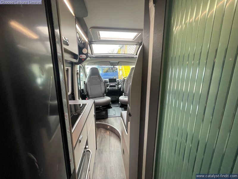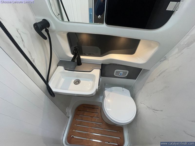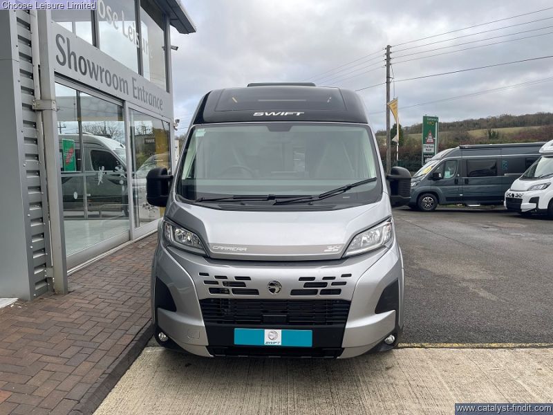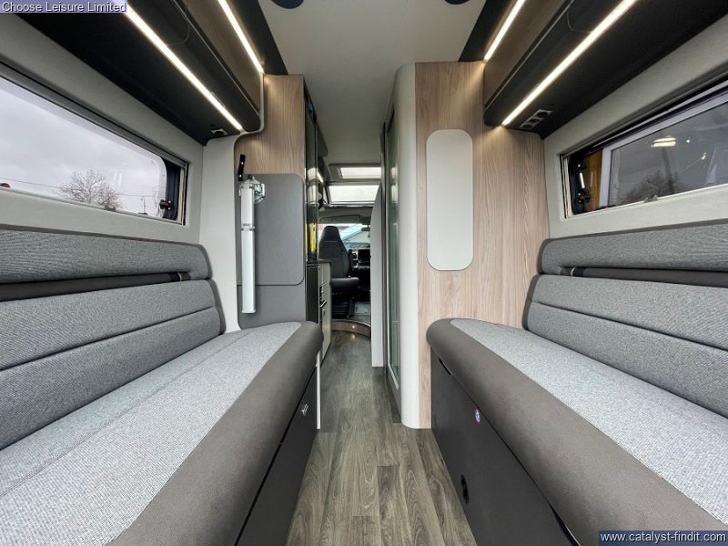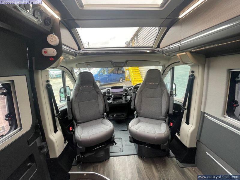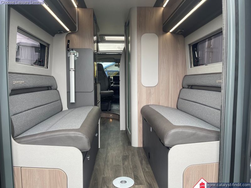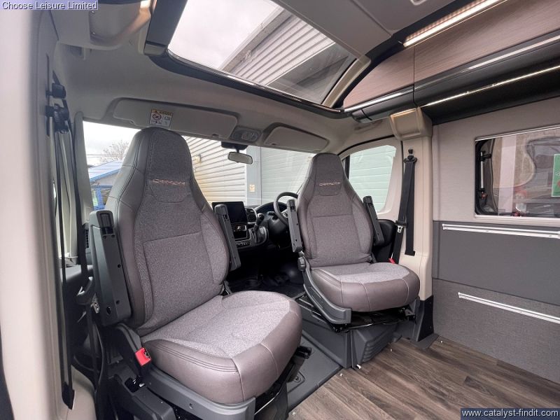 - Step inside this vehicle to see a completely distinct look that’s packed with features from stylish to functional. The Ultra Leather® Montage for the soft furnishing scheme offers a modern yet comfortable living experience whilst the Sangallo Elm woodgrain furniture provides an airy, relaxing feel, aided by the front sunroof that lets natural light pour in. The front cab is equipped with everything needed for comfortable long journeys such as a 7” touchscreen HD colour display, cruise control and cab air-conditioning. When you’ve reached your destination, the driver and passenger captain chairs swivel round to provide additional lounge seating, perfect for all the family. Carrera continues to impress with a unique style wet room featuring an Ecocamel Jetstorm showerhead for a powerful shower that uses less water, as well as a Micro-Heki skylight. In Addition, the Whale water heating system and underfloor heating will keep you warm all year round. Technical: