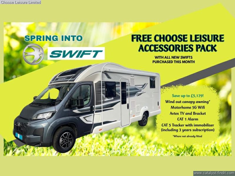 - The ever-popular Swift Escape is back with a striking new look for 2026. Featuring refreshed exterior graphics and a stylish new soft furnishing scheme, Escape blends modern design with all the practical features you’d expect from a premium motorhome. From Aguti travelling seats to streamlined furniture and a boutique-style washroom, every detail is crafted for comfort and convenience.