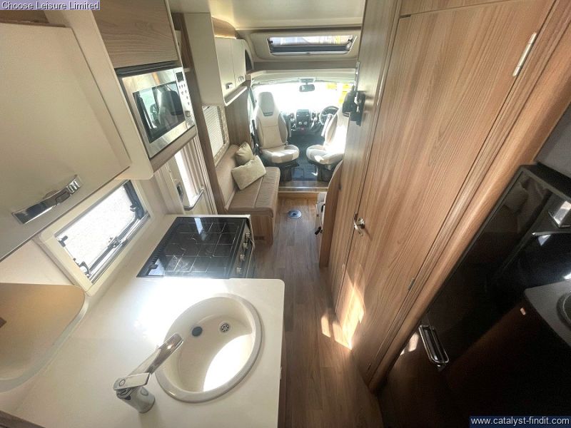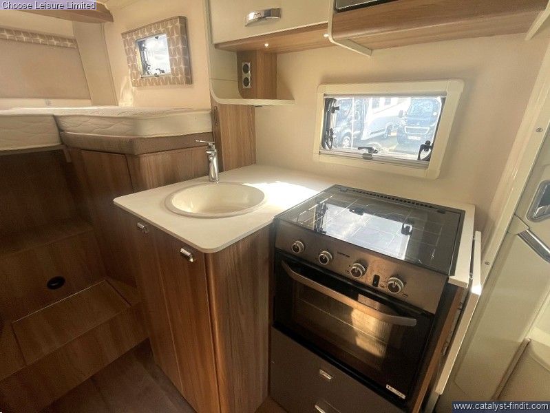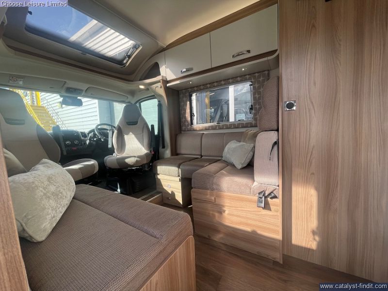 - Swivelling front seats gives you extra seating options in the lounge area and there are 2 additional travelling seatbelts. With the panoramic skylight there's a feeling of space and you can easily convert the sofas into a double bed. The kitchen features an oven, hob with 3 gas rings, a large fridge freezer, sink and microwave. Stepping up to the bedroom you can enjoy this as a large double bed or two singles and there are under-bed storage cupboards with rails, so perfect to use for wardrobes. The washroom includes a shower, toilet and sink. Throughout this vehicle you’ll notice that instead of curtains the windows are framed, this is a nice modern touch to a delightful motorhome. Technical: