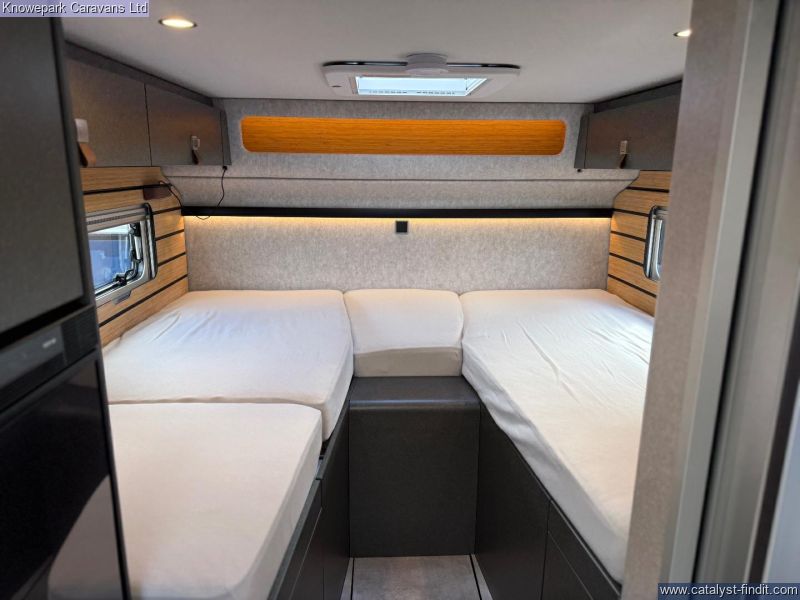 - Looking to be able to go anywhere? Look no further than the Hymer ML-T 570 Crossover. This fantastic 4x4 vehicle is built on the reliable Mercedes-Benz Sprinter platform, delivering outstanding performance both on and off the road.Designed for adventure without sacrificing comfort, the ML-T 570 Crossover features a smart, compact layout with a stylish lounge, fully equipped kitchen, and comfortable sleeping space—perfect for extended trips. Its rugged all- terrain tyres, raised suspension, and off-road capability make it ideal for exploring beyond the usual campsites.Equipped for true off-grid living, it includes advanced lithium battery technology, solar power, and generous water capacity, allowing you to stay independent for longer. Combined with premium Hymer build quality and year-round insulation, this motorhome is ready for any journey, in any season. Finance Available.