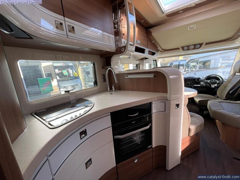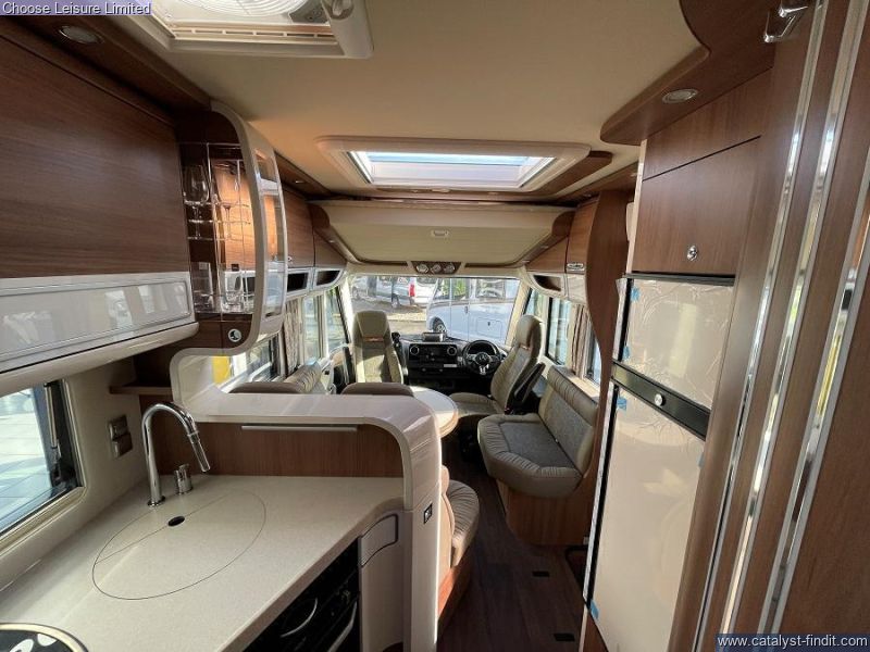 - Boasting two extra travel seats, this vehicle sleeps and travels four therefore it is the perfect family motorhome. The luxurious feeling that emulates throughout the van is undeniable. The craftsmanship is second to none. The large front round seating area with luxury living area table and wide side seat bench is ideal for socialising. The comfort corner kitchen with curved work surface is beyond equipped for your culinary creations. Featuring a slide-out storage cabinet integrated in round washroom wall allowing for all your home comforts to join you on your travels. The changing room is separable via luxury washroom door with 3-way function thanks to washroom double door and pull-out TV wall and room divider, this allows both privacy and convenience. Extra-large queen-size bed in 200 cm king-size format, comfortable sleeping width as far as the foot area as well as two wardrobes at each side of the queen-size bed and two large drawers at the front of the queen-size bed. Technical: