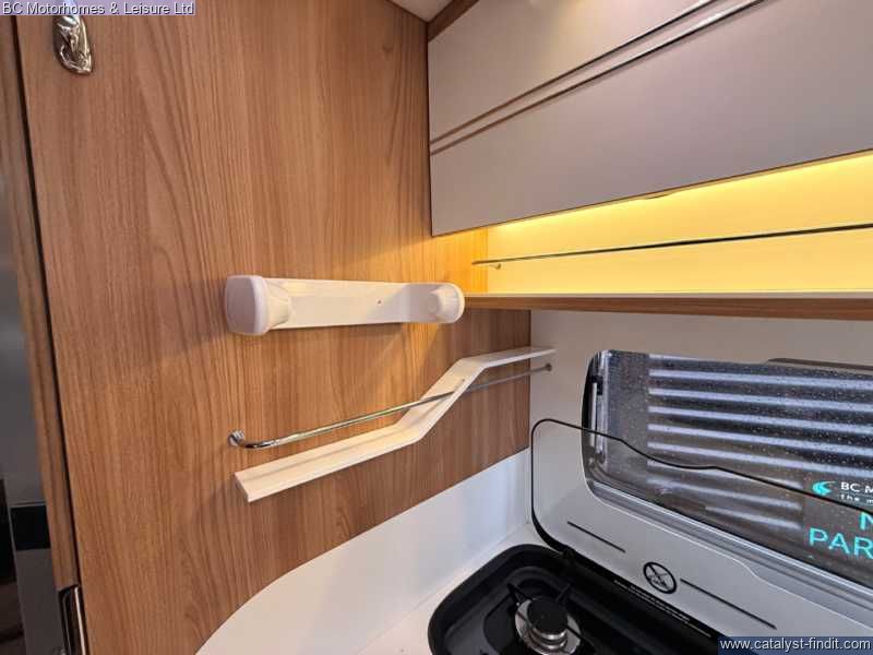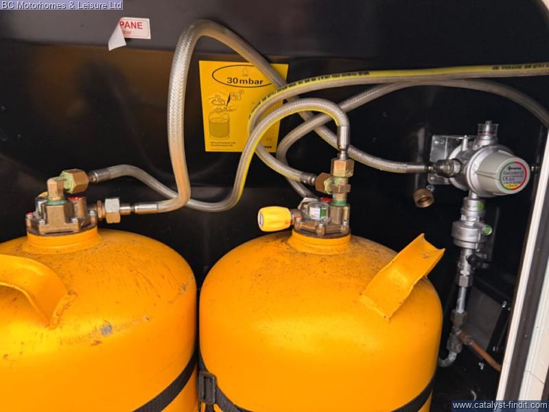 - Gaslow System: Enjoy hassle-free refuelling and extended gas use with the convenient refillable Gaslow setup – perfect for long trips across the UK and Europe. Powerful Inverter: Seamlessly run your 230V appliances wherever you are. Premium Leather Upholstery: Luxurious, easy-to-clean interior offering timeless comfort and style. Self-Levelling System: Park on uneven ground with ease – automatic levelling at the touch of a button ensures stability and convenience. 350W Solar Panels: Harness the sun’s energy to keep your batteries topped up and your adventures off-grid. Lithium Batteries: Modern, lightweight power storage delivering superior capacity, faster charging, and longer lifespan compared to traditional setups.