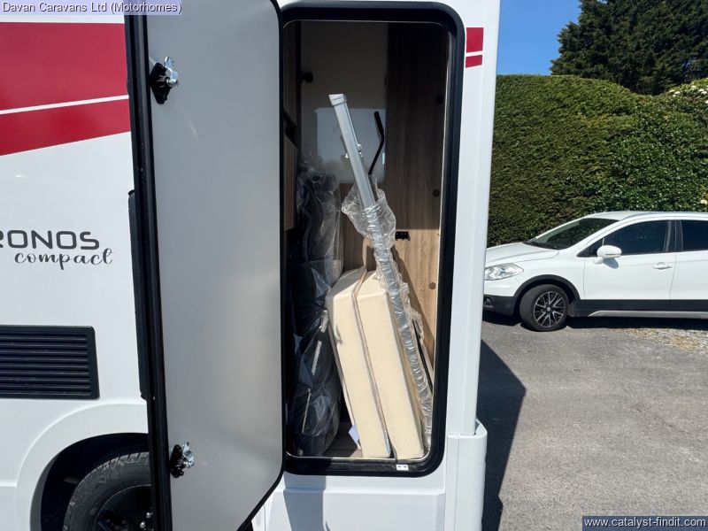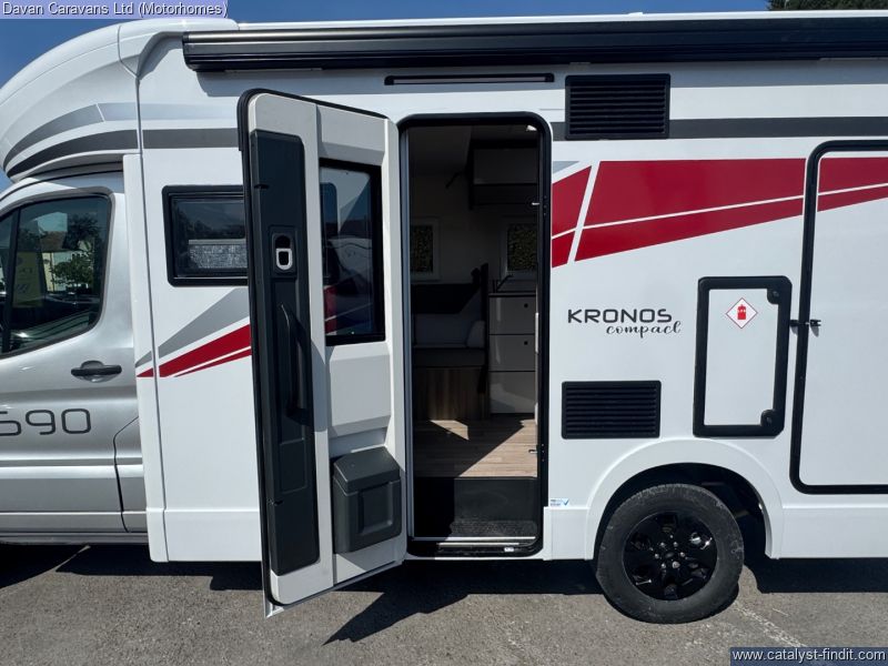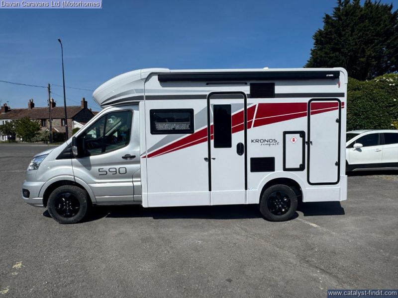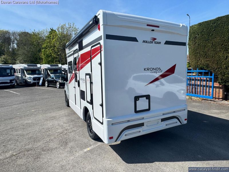 - This new slimline coachbuilt model for 2025 offers the functionality of a motorhome with the manoeuvrability of a campervan, all built on a Ford Transit chassis. With a traditional layout that includes a rear bathroom and generous storage options throughout, the Kronos Compact 590 ensures you don’t have to compromise on comfort for your adventures. This Kronos 590 features the Drivers pack, a wind out canopy, Reversing camera, Solar panel, Front sleeping upgrade, Cab blinds and much more. Come and see this fantastic new Rollerteam at Davan in Weston - super - Mare or call our sales team on 01934 524 242.