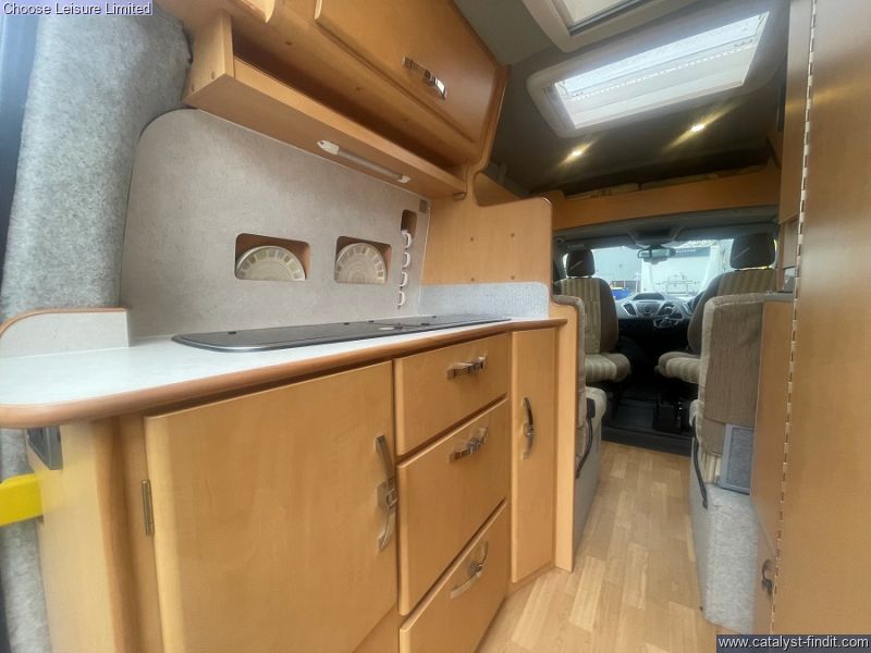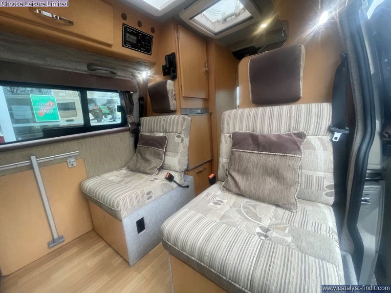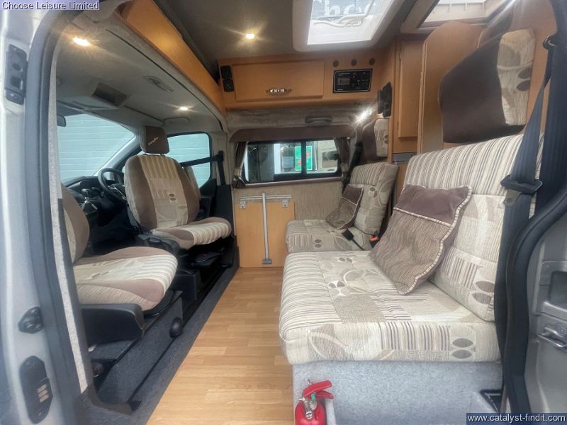 - The interior layout consists of 2 opposite settees with travelling seat belts that can convert into 2 single beds. This lounge area is enhanced even more by the swivelling front seats. The rear end kitchen area consists of a fridge, full sized oven and hob. The spacious washroom has a folding privacy screen and cassette toilet. Ideal for use as an everyday vehicle that doubles up as your holiday home as required. Technical: