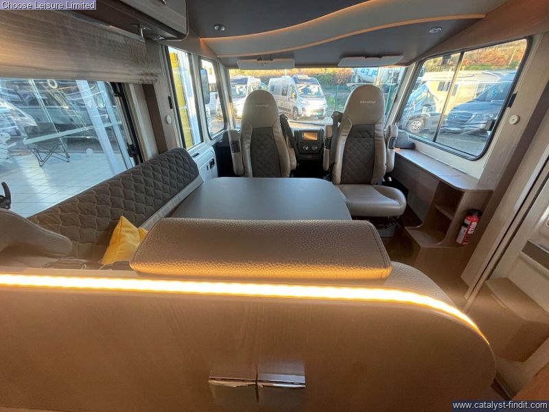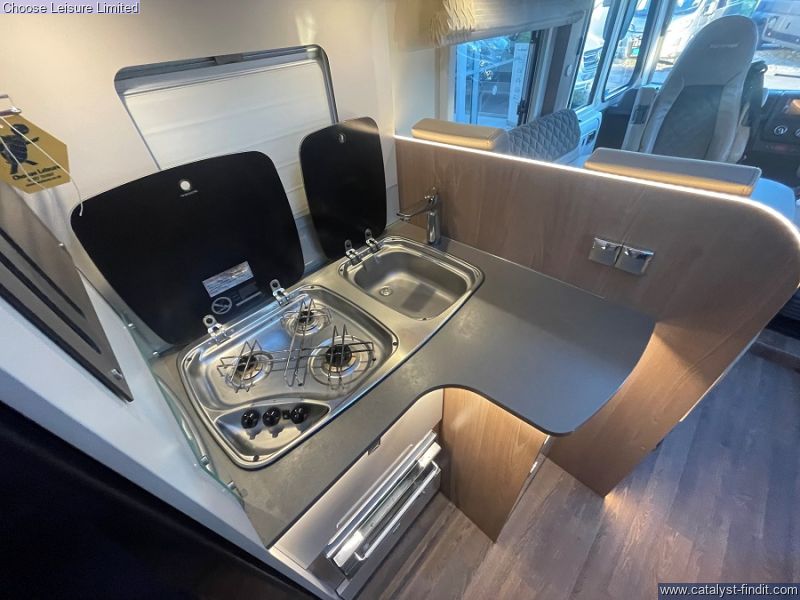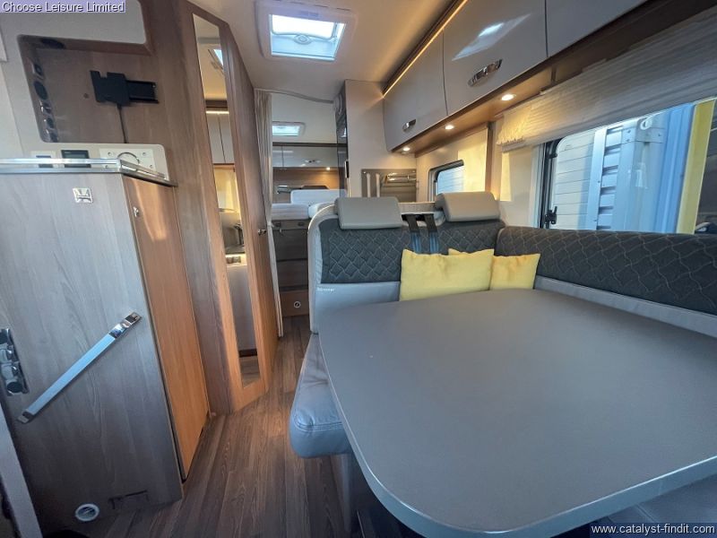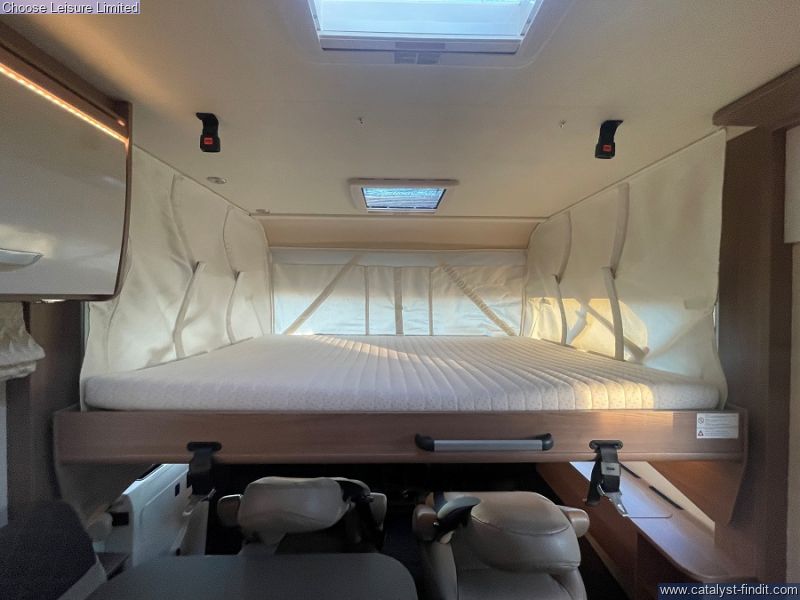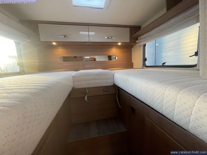 - This family motorhome exudes style and sophistication. The ever popular layout and finishing touches make this a must see vehicle. The front dinette with its swivelling captains chairs ensures everyone has a seat at the table. A perfect space for entertaining on the road! Above there is a spacious electric drop down double bed. The central kitchen is well equipped and the opposing washroom is bright and has a separate shower. The rear has a large fixed bed which can be made into 2 single beds. Complete with lots of storage throughout including a large garage space! Technical: