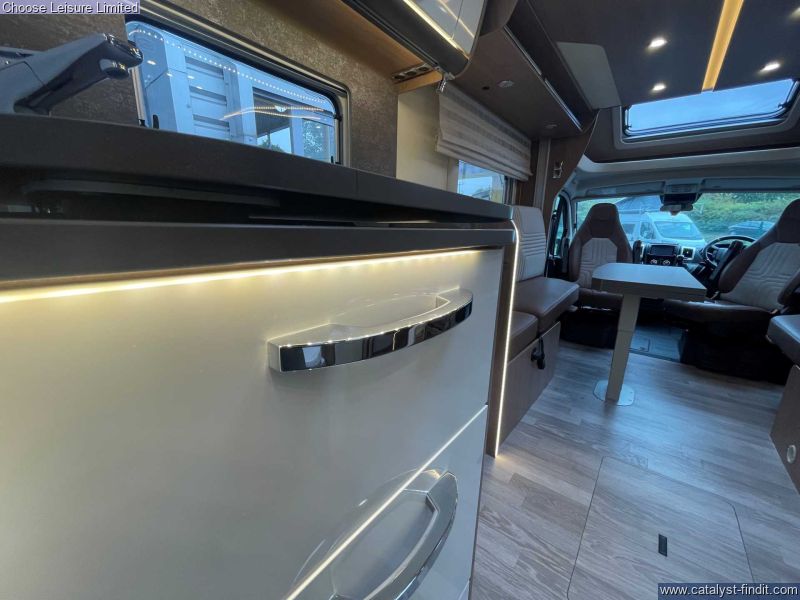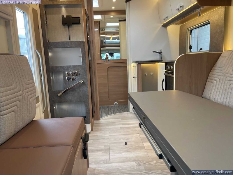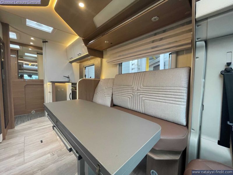 - This Burstner presents a well-planned spacious design - both clever and versatile. Swivelling cab seats add additional leisure seating at the large table and the L shaped sofa has two forward facing travelling seatbelts in addition to another side-facing sofa. Above this comfortable, flexible area there is a transverse drop down electric double bed, you will hardly notice this is when in its daytime position. The modern, central kitchen is well equipped with an oven, hob with 3 gas rings, large fridge and a delightful pull out cupboard. The washroom has a fantastic design encompassing the full width of the rear of the vehicle with a toilet and sink on one side with a separate shower cubicle opposite. The layout is completed by a full width garage with two access doors, one allows you to access everything internally! This motorhome has everything you need to travel in complete style and everything you need along with you. Technical: