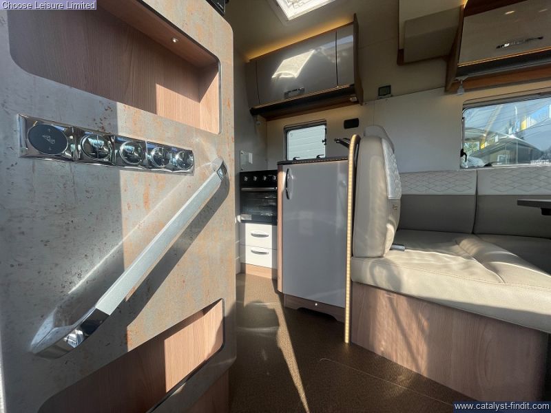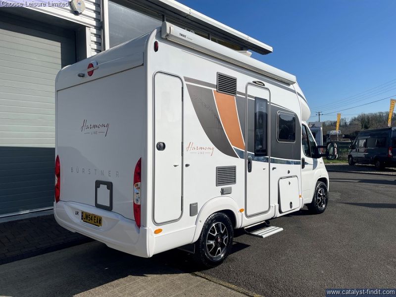 - Designed to provide the luxuries of a larger motorhome but in a more convenient footprint. This beautifully appointed Burstner packs everything you could need into its compact design. The front lounge is really roomy for a smaller vehicle and comfortably seats 6 around the adjustable table. The interior looks fresh and modern thanks to the light leather upholstery and neutral colour scheme throughout. The central kitchen is very space efficient and all the facilities are at your disposal for knocking up a hearty meal. The bathroom is neat and well designed with a separate shower and plenty of storage. The external storage compartment is full height with hanging rail and drainage valve on the base. This 4 berth motorhome maximizes living space and boasts headroom of 205cm with extra wide entrance door and the drop down electronic bed is height adjustable. Technical: