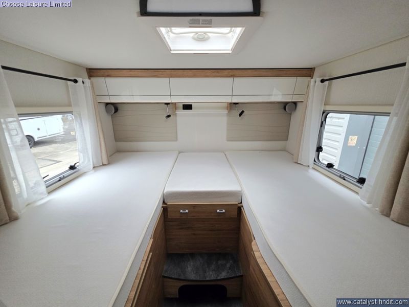 - Measuring 7.45 m, this new addition to the Pacific range is a comfortable low-profile for two people with twin beds and face-to-face lounge. Each area is pleasant and separate. Its stylish details and quality fittings make this a perfect travel companion for short getaways or longer trips. With a 4 legal seats and optional berths in the lounge, it can carry up to 4 passengers. This low-profile has a large lounge with face-to-face bench seats. 5 people can be seated around the fold-out dining table. It’s a perfect layout, both for entertaining and in terms of ease of movement. The kitchen is pleasant, with a large work surface and quality equipment. The bay windows and numerous LED lights ensure that the kitchen is well lit day and night. The shower room is walk-through and has double partitioning to provide 3 independent living areas. The skylight provides light and ventilation. And because it's always practical, the shower room is equipped with an optional clothes hook and towel rail. The sleeping area at the rear of the vehicle is separated from the rest of the cabin by a door. It has two single twin beds with comfortable mattresses on slatted bases. The bed extension between the 2 beds allows you to relax in an XXL bed. You'll also have plenty of generous storage space, with large wardrobes and numerous interior cupboards. The large hold at the rear of the vehicle is accessible via 2 side doors. Low enough to make loading and unloading easier. Thanks to the raised twin beds above, the storage area boasts excellent height, ideal for transporting tall and bulky items. Select an optional side skirt drawer for additional storage space. Technical: