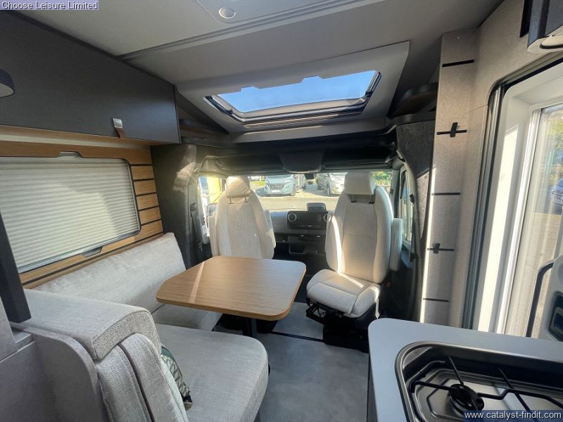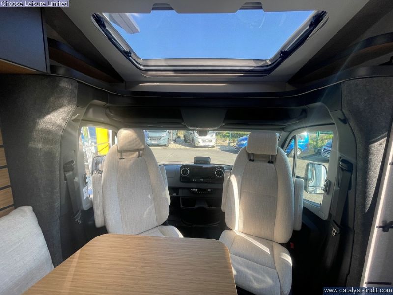- Clear lines, modern decor as well as clever details ensure that every journey travelled becomes a stylish experience. Enjoy incomparable driving comfort based on the 170 bhp Mercedes-Benz sprinter, equipped with the 9G-tronic automatic transmission, a multimedia system including navigation and reversing camera as well as extensive assistance systems. The 4m long awning is a practical extension of your living space and gives you a touch of wilderness chic! The well-thought out internal layout includes a comfortable front lounge, Mid ship kitchen with opposing bathroom and luxurious rear beds. The large, easy-access garage is perfect for storing everything from sports equipment to suitcases, ensuring the living area of your motorhome stays clutter free and organised. Technical: