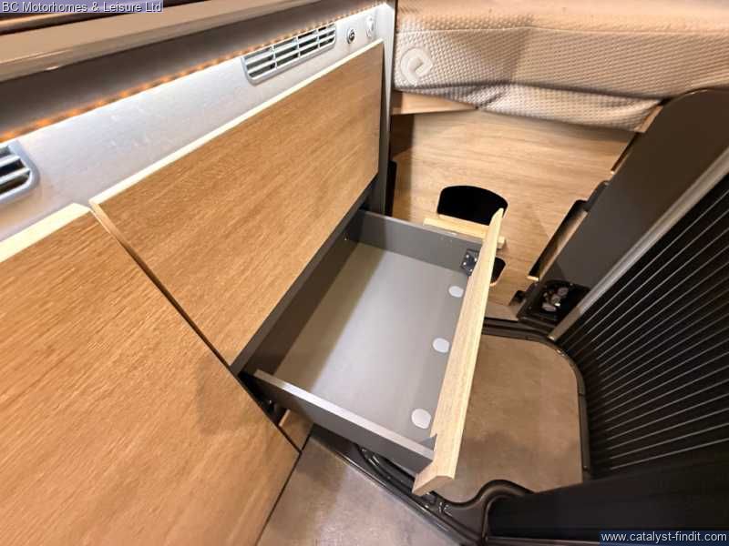 - 140bhp Automatic Transmission 9 Speed Lounge package 10" radio Lanzarote Grey Exterior Diesel Heating Chassis package Electrical package Comfort package Scandi Upholstery Duo Control CS gas regulator, switchover system Exterior Decals Insulated wastewater tank Lashing system in rear garage floor