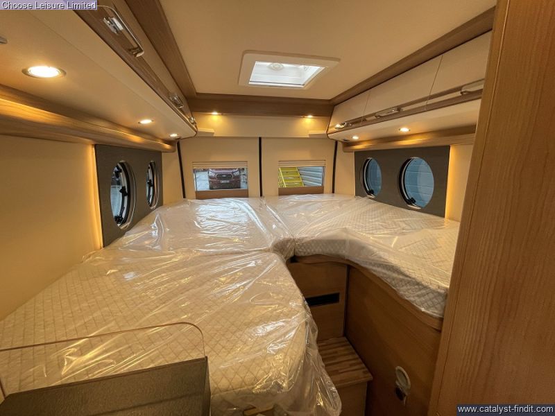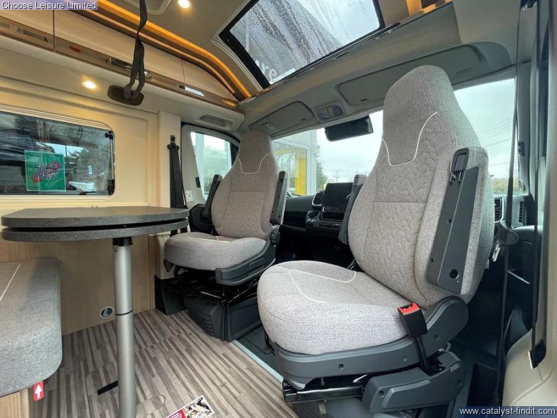- With all the comfort of a coachbuilt motorhome, this smart van conversion offers style, convenience and great spec. With its Skyview sunroof, alloy wheels and porthole windows, this sporty model certainly looks the part. Called 'First class - Two rooms', the key feature being a room divider to separate the bedroom from the living area. The lounge area is a half-dinette with a wall mounted table and swivel cab seats. The mid kitchen offers a large kitchen work surface, deep kitchen drawers for storage, an 84l fridge, two ring gas cooker and sink. The XL flexi washroom is cleverly designed so the toilet can be swivelled away for maximum space utilisation when showering. The rear bed can be used in two ways either as two singles or as a transverse double. Also to the rear is a tall cabinet suitable for use as a wardrobe or for general storage. There is also storage under the beds -a great use of space! The stunning expedition Grey exterior is bound to turn a few heads as you pull into any campsite.