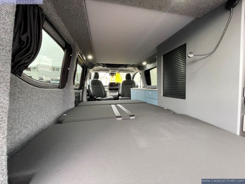 - Founded in 2001, Bespoke Leisure has grown to become one of the few companies in the UK and Ireland to hold Type Approved Manufacturer status – a mark of quality, safety, and compliance in the leisure vehicle industry. The new VW Transporter T7 delivers the perfect combination of comfort, safety, practicality, modern design, and cutting-edge technology. Built on the VW transporter T7 base - the newest of the transporter generations. This premium, ready to go campervan blends the practicality of a modern van with well-thought out living comforts for touring. The driver and passenger seats swivel when parked up to allow a more social living space inside the vehicle. At night the rear seats fold out thanks to its RIB Altair fold out rear seat/bed with isofix. The Pop-top roof with Froli sprung bed system and memory foam mattress — doubles the sleeping capacity and gives headroom when parked. A fully functional kitchen space provides utilities such as a 50L fridge with removable ice box, 2 burner hob and sink and a hot water system. With the addition of a rear activity shower with hot and cold mixer — there's outdoor washing when you need it. A super four-berth motorhome setup that’s compact enough for everyday use and versatile for holidays. Technical: