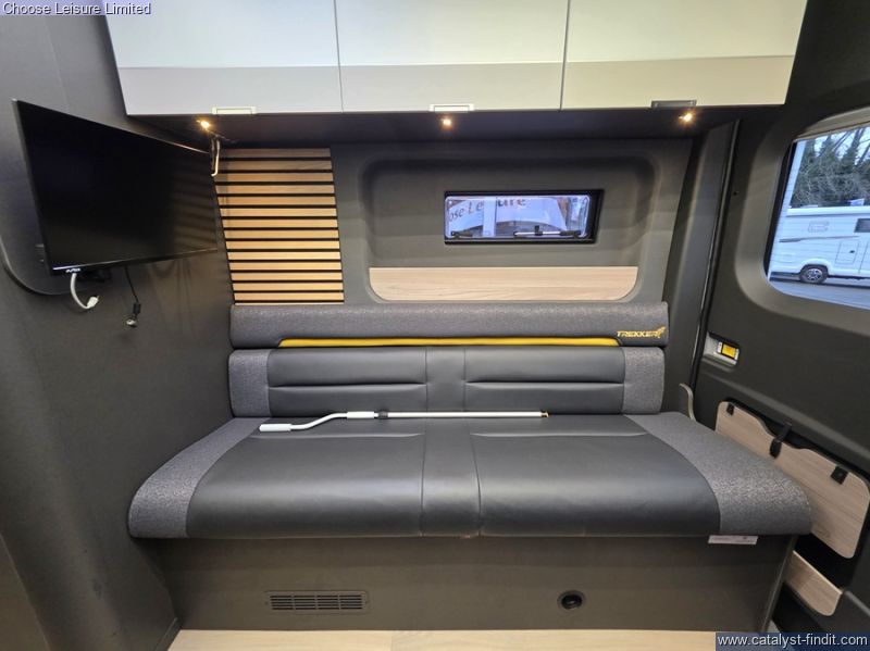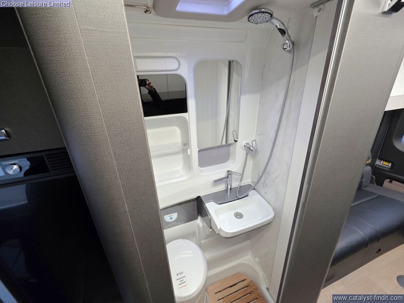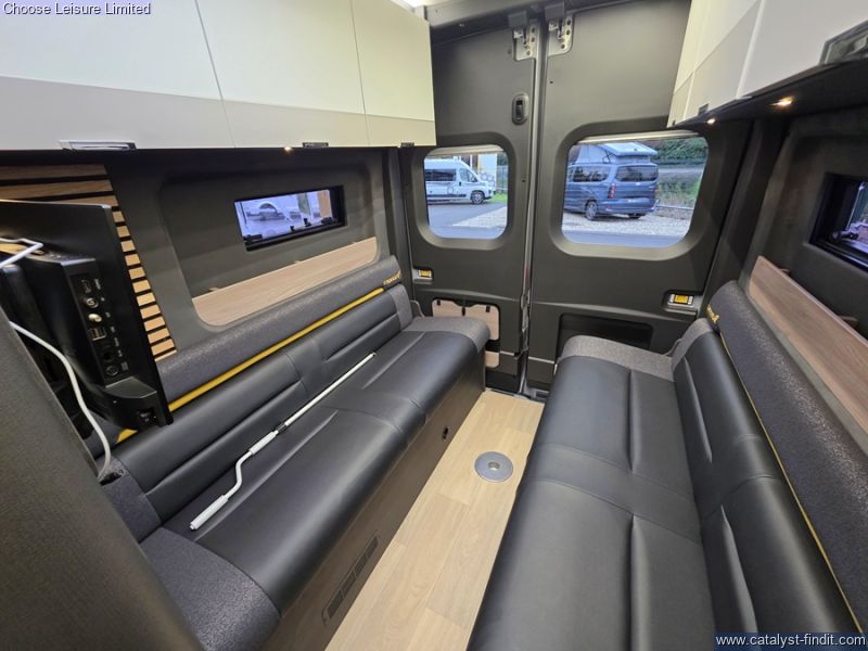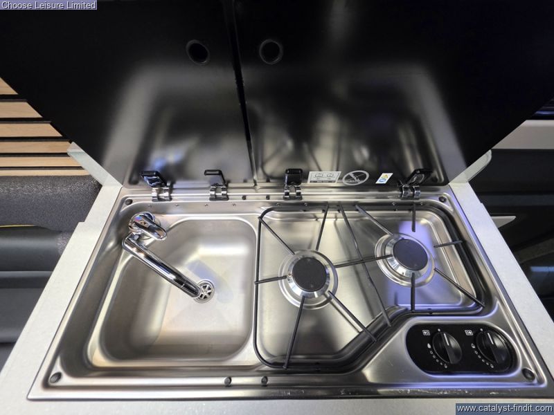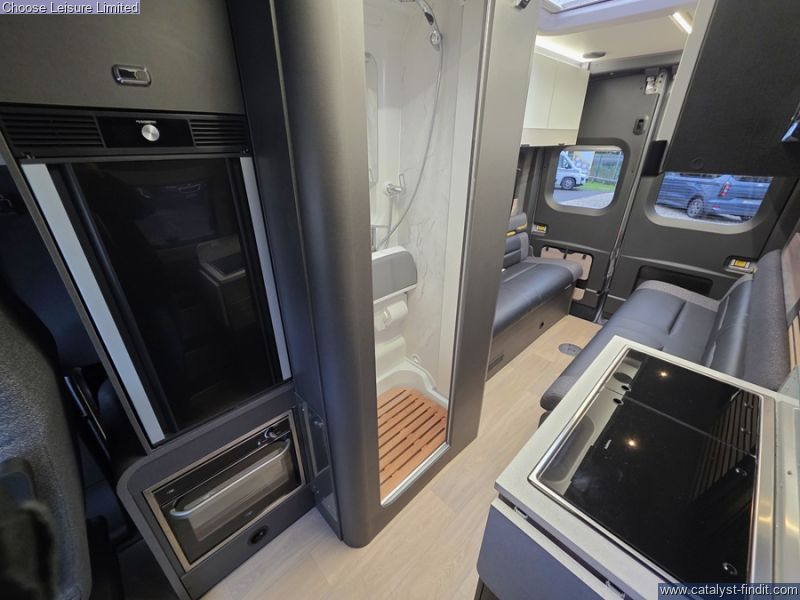 - Ford Transit Panel Van in Grey Matter with black bumpers and eye-catching graphics. Rear lounge seating with angle seats for more storage. Kitchen area includes a built-in oven with grill, Dometic two burner stainless steel hob and sink with glass lids plus Dometic 50L compressor fridge and two lift up worktop extensions. Washroom comes complete with shower tray with foldaway washbasin and separate vanity tap, Shower mixer with Ecocamel Jetstorm shower head and retainer, with on/off button for a powerful shower that uses less water and Upper vanity cupboard with mirror, LED lighting and decorative panel. Nearly New, Travelled less than 4000 miles. Technical: