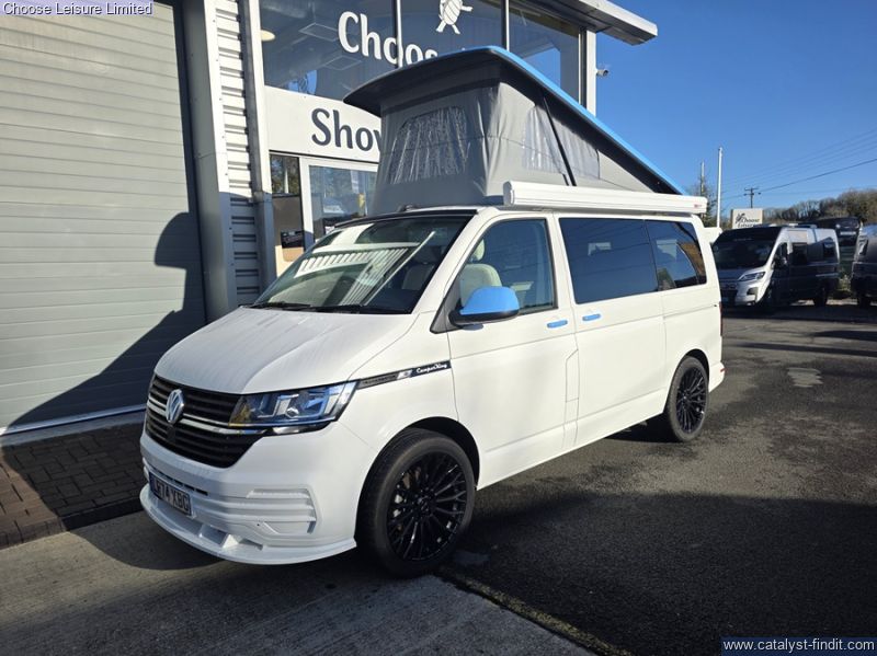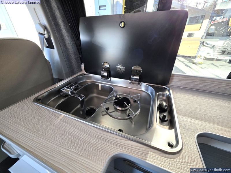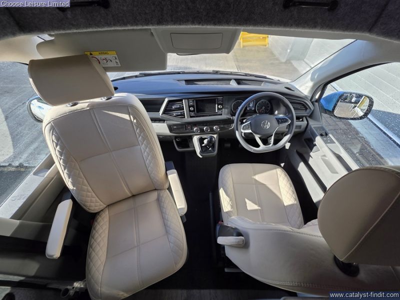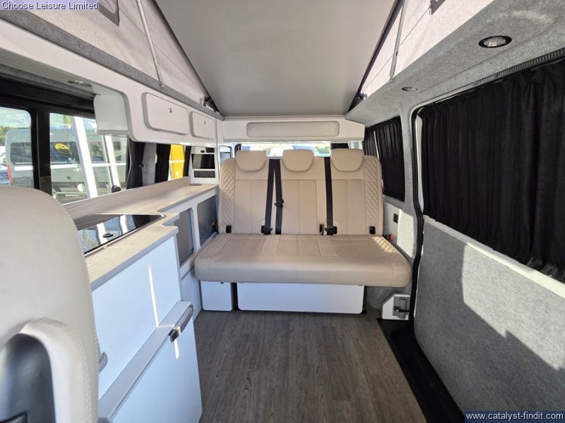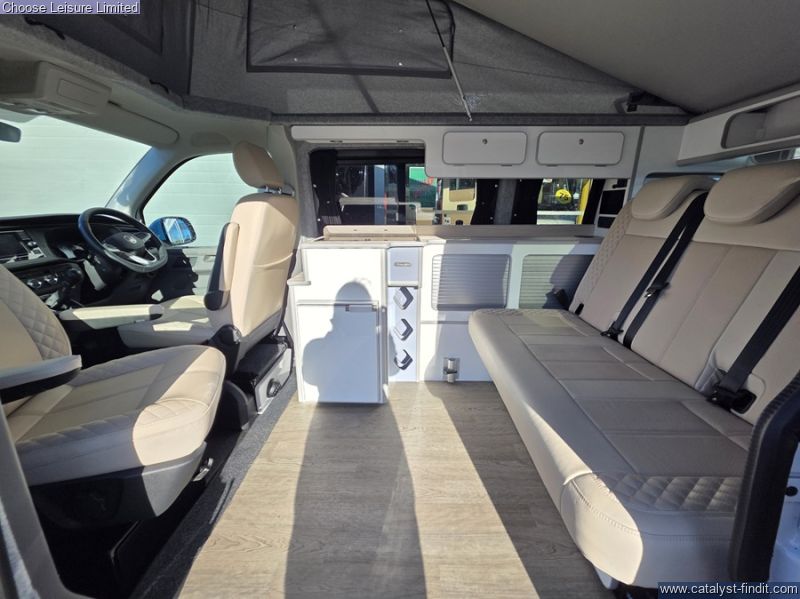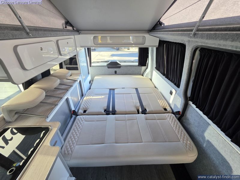 - This stylish and sporty van conversion is the ideal camper for your holiday requirements! A high spec conversion in Candy white with a baby blue roof and highlights. The interior is simply beautiful and finished to a fantastic quality. The passenger seat swivels around to enhance the living area space, while a removable table provides extra dining or preparation space. The kitchen has lots of fun ambient lighting and includes a sink, hob, and fridge freezer. The rear seats effortlessly transform into the first of your double beds at night-time. The second double bed is found in the colour coded pop top roof which also gives great storage space when the bed is not in use. The detail and care taken on this conversion is very clear to see and this will make a fabulous luxury camper for someone! Technical: