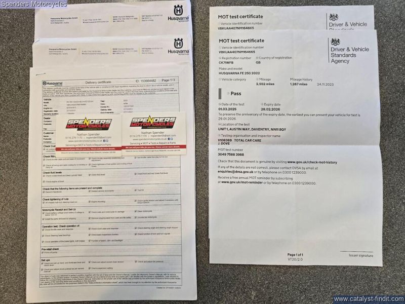 - Good Condition, 3 Months Warranty Available, Only 2 Former Owners From New, Good Service History, Fresh MOT When Sold, A Very Fabulous Model From Husqvarna, Looks Absolutely Stunning, Perfect For Weekend Green Laining, Looks Like It's Been Very Well Looked After, The Bike Looks Mainly All Nice And Standard As It Was From New, Also Comes With Spare Keys, Service Booklet, Owners Manual, Husqvarnas Brouchers, Genuine Husqvarna Pouch, Full MOT History, V5 Logbook, HPI Clear,